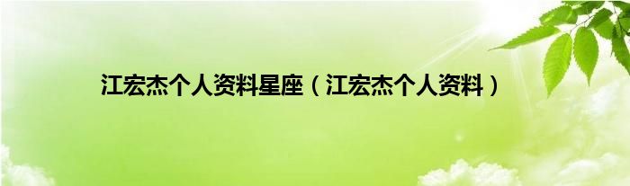 本文,江宏杰个人资料星座,江宏杰个人资料到此就分享完毕,希望对大家有所帮助。
