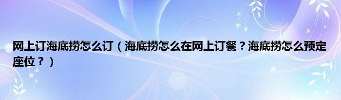本文,网上订海底捞怎么订,海底捞怎么在网上订餐?海底捞怎么预定座位?到此就分享完毕,希望对大家有所帮助。